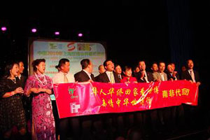 晚會(huì)行將結(jié)束時(shí),房利總領(lǐng)事登臺(tái)宣布:“華僑華人回家看世博、親情中華世博行”南非代表團(tuán)現(xiàn)在起程!