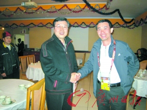 “你好!沒有想到我們又見面了!弊蛱焱砩,記者邂逅到中國駐約翰內(nèi)斯堡領(lǐng)事館房利總領(lǐng)事,記者數(shù)月前來南非作賽前采訪時,房總領(lǐng)事就曾經(jīng)親切接見過本報記者,并與記者共進(jìn)晚餐。這次約堡再度重逢,相當(dāng)熱情。