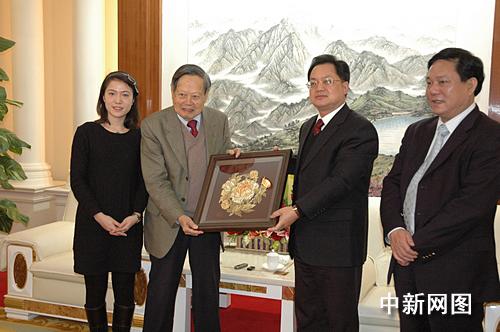 會(huì)見后,駱文智向楊氏伉儷贈(zèng)送了潮州特色的潮繡“金牡丹”,并宴請了楊氏伉儷。晚宴后,楊振寧夫婦還在駱文智的陪同下,參觀了潮州市傳統(tǒng)工藝精品館、潮州文化藝術(shù)中心和潮州博物館。完