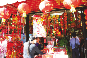 虎年的腳步聲近了,中國城的大小商家鉚足了勁,準備來個“開門紅”,以虎為圖案的宣傳招牌到處可以看見。走在中國城的街道上,最能夠吸引大家眼球的是迎新春的“中國紅”的各種飾物!盎⒛暾胸敗睊旒,紅燈籠,紅春聯(lián),紅色的吉祥物、招財進寶的童子,健康長壽的壽星,顏色全部以紅色為基調,讓整條百老匯大街喜氣洋洋。店員珍妮告訴記者,前來詢問“虎年商品”的華人、“洋人”都很多,他們都很懂中國新年,知道挑選與生肖有關的小商品。她說,不少學校的老師,也前來購買一些“虎年紅包袋”及可愛小老虎的飾件;這些東西老師都將用于課堂,讓學生了解中國人過年的民俗,他們還會給學生發(fā)“新年紅包”。