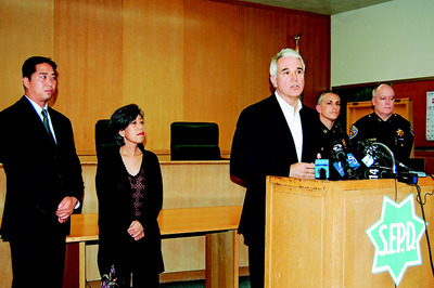 這是舊金山市今年首宗警員開槍射殺嫌犯案,也是新局長賈斯康上任一個月第一件警員開槍事件。賈斯康于案發(fā)后12小時在警局舉行記者會,兩名華裔警委李艷虹和潘偉旋出席。