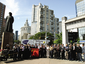 中新網(wǎng)9月27日電 據(jù)美國《僑報》報道,來自紐約大學(xué)Poly學(xué)院中國學(xué)生學(xué)者聯(lián)誼會、中美青年聯(lián)合會的一群80后青年學(xué)子,25日在紐約華埠且林士果廣場和僑胞們一起舉行了慶祝祖國60周年華誕和紀(jì)念中美兩國建交30周年中、美兩國國旗傳遞和升旗儀式。