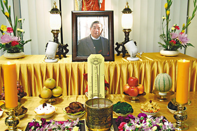 三寶寺依照法師主持誦經(jīng)。依照法師表示,她認(rèn)識唐德剛20多年。早年星云大師率團訪問中國,唐德剛也是成員,星云大師還委托依照法師照顧唐德剛。她表示,唐德剛為人幽默慈祥,他的談笑風(fēng)生、灑脫自在至今令她難忘!疤频聞傋吡耍窃谖倚闹,他并沒有走!