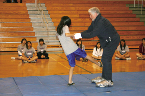 記者發(fā)現(xiàn),幾十名華裔女生大都比較害羞,吶喊聲音很小,動(dòng)作也只是點(diǎn)到為止。相比之下,西裔女生則很認(rèn)真,而且敢于上場(chǎng)與“色狼”對(duì)練。華裔11年級(jí)女生陳青青表示,學(xué)了自衛(wèi)術(shù)之后,覺得很有用,起碼在遇到被色狼攻擊的時(shí)候不會(huì)那么害怕,知道該怎樣應(yīng)付,如何脫身。