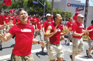 中新網(wǎng)6月15日電 據(jù)美國(guó)《僑報(bào)》報(bào)道,西好萊塢13日舉行了盛大的同性戀大游行。今年是洛杉磯同性戀大游行40周年紀(jì)念日,為此今年參與游行的人數(shù)明顯增多。少數(shù)華人也出現(xiàn)在游行隊(duì)伍中。