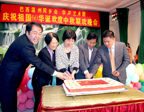溫州同鄉(xiāng)會會長張偉在致詞中表示,新中國成立至今,已走過了60年光輝歷程,偉大祖國發(fā)生了翻天覆地的變化,特別是改革開放30年來,中國社會主義現(xiàn)代化建設(shè)取得了舉世矚目的成就,綜合國力顯著增強(qiáng),國際地位日益提高,巍然屹立在世界東方。祖國的發(fā)展和強(qiáng)大使旅居巴西的華僑華人深受鼓舞,深感喜悅和自豪。祖國的繁榮和強(qiáng)盛同樣也給僑胞們事業(yè)發(fā)展帶來了新的機(jī)遇,相信在以后的日子里,溫州華僑將繼續(xù)發(fā)揚(yáng)團(tuán)結(jié)一致、努力創(chuàng)業(yè)的光榮傳統(tǒng),為帶動巴西地域經(jīng)濟(jì)發(fā)展和家鄉(xiāng)各項事業(yè)發(fā)展做出更大的貢獻(xiàn)。