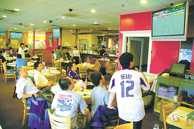 阿罕布拉的一家港式西餐廳11日清晨7時(shí)即聚集一批華人球迷,商家也應(yīng)景將店中全部電視調(diào)到球賽轉(zhuǎn)播,大家同樂。 (美國《世界日報(bào)》/楊青攝影)
