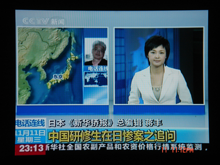 中新網(wǎng)11月13日電 據(jù)日本新華僑報(bào)網(wǎng)報(bào)道,11月8日,日本熊本縣發(fā)生中國(guó)農(nóng)業(yè)研修生王寶泉自殺以及與此相關(guān)的命案!度毡拘氯A僑報(bào)》作為華文媒體在第一時(shí)間進(jìn)行了報(bào)道,經(jīng)過(guò)中國(guó)門(mén)戶網(wǎng)站轉(zhuǎn)載后,引起強(qiáng)烈反響。11月11日晚上,中國(guó)中央電視臺(tái)新聞?lì)l道24小時(shí)節(jié)目對(duì)該報(bào)總編輯蔣豐作了連線采訪。
