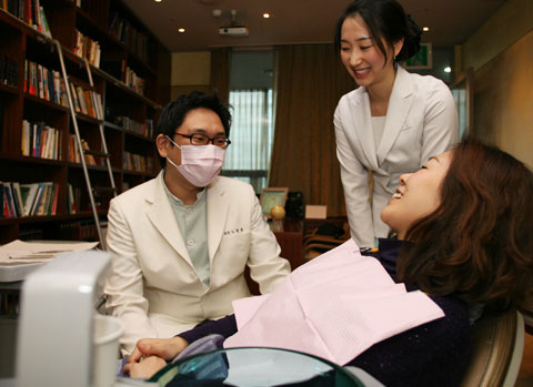 中新網(wǎng)1月7日電 據(jù)韓國《朝鮮日報(bào)》報(bào)道,5日,韓國首爾江南區(qū)清潭洞的牙科11層。“啊~決定治療了嗎?牙的哪個(gè)部分不合您的心意?”院長No Jeong-jun向身穿紫色針織T恤躺在診療臺上的日本人患者問道。站在旁邊的院方咨詢服務(wù)師當(dāng)即做了翻譯;颊哒f“我的牙歪歪斜斜地太不整齊了”。她是3日為接受牙齒貼瓷整形治療以4天日程訪問韓國的日本主婦崎本。