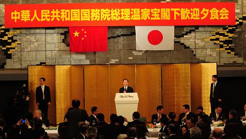 5月30日傍晚,溫家寶總理抵達(dá)日本首都東京展開為期3天的友好訪問。溫總理抵達(dá)下榻的新大谷酒店,未作休息,馬上會(huì)見等候多時(shí)的日本民間友好團(tuán)體和友好人士并頒獎(jiǎng)。圖為溫總理在頒獎(jiǎng)儀式上發(fā)表講話。講話中他多次感謝日本友人為中日友好所作出的努力。 中新社發(fā) 孫冉 攝