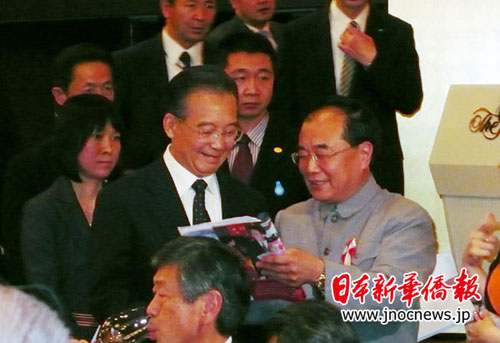 因為這次是溫總理在晚宴現(xiàn)場突然會見姜維,記者事前毫無準備,匆忙之中只能按動相機的快門,記錄下溫家寶總理會見旅日僑胞的一個生動片斷。(蔣豐)
