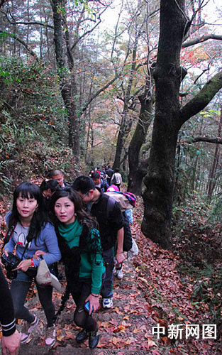 中新網溫州12月15日電 (記者 李飛云)入秋以來,中國著名僑鄉(xiāng)——浙江文成四周山嶺上的紅楓古道成為旅游的熱門場所,被北京大學教授謝凝高稱為“紅楓古道,江南少有。存之不易,堪稱佳景!泵康街苣┘偃,就吸引滿山的游客訪古尋幽。