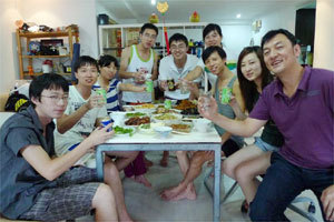 年三十下午4:00左右,趙建國來到位于裕廊東的朋友家中,其他幾個朋友也陸陸續(xù)續(xù)趕到。大家都帶了自己拿手菜的基本材料,開始在廚房里忙活起來。趙建國不用做菜,他主要負責(zé)包餃子,以及年夜飯后洗碗等后續(xù)工作。