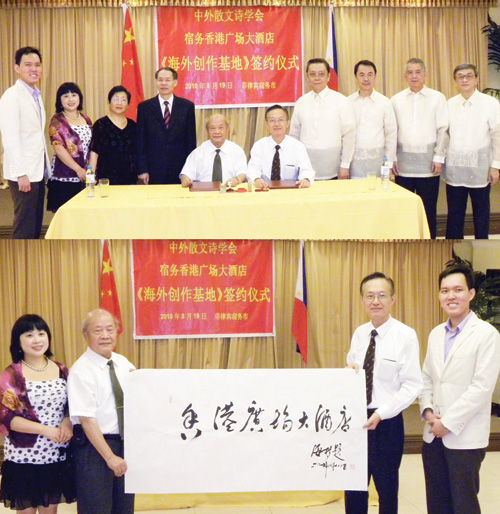 在何時敬和宿霧華社人士的共同見證下,中外散文詩學(xué)會與菲律賓宿霧香港廣場大酒店于19日晚,簽署了創(chuàng)設(shè)“中外散文詩學(xué)會海外創(chuàng)作基地”的協(xié)議。
