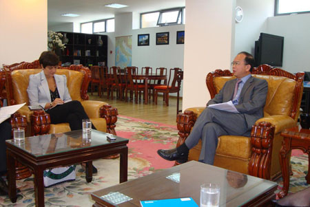 中新網(wǎng)9月28日電 據(jù)意大利歐聯(lián)通訊社報道,日前,中國駐意大利使館丁偉大使接受意大利當?shù)孛襟w《信使報》記者博齊專訪,向意大利記者介紹了意大利中國文化年的籌備情況,以及文化年活動的相關內(nèi)容。并應詢記者的請求,就中國經(jīng)濟發(fā)展形勢、人權現(xiàn)狀以及中美關系做了介紹。