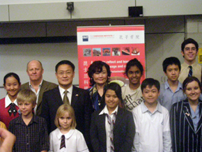 任共平在致辭時表示,很高興看到昆州學(xué)生如此踴躍地學(xué)習(xí)中文并參加中文演講大賽,祝賀獲獎?wù)呷〉玫暮贸煽儭K赋,學(xué)習(xí)中文既可以為自己增加一門語言技能,也能打開了解中國歷史和文化的窗口,建立起相互溝通、增進(jìn)中澳兩國人民友誼的橋梁。他表示,各位學(xué)生在慶祝中華人民共和國建國60周年之際參賽、獲獎,具有特殊意義,希望同學(xué)們繼續(xù)努力。