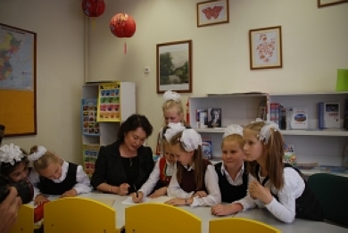 明斯克市蘇維埃區(qū)副區(qū)長希帕伊也興致勃勃地拿過話筒,她說,白俄羅斯人民希望全面深入地了解中國,學(xué)習(xí)中國,白俄羅斯社會對漢語和中國文化的興趣空前增加。明斯克市教育部門決定大力推廣漢語教學(xué),第23中學(xué)有幸被白俄羅斯教育部選定為首批開設(shè)漢語教學(xué)的中小學(xué)之一,該校2006年9月開設(shè)漢語班以來,越來越多的學(xué)生對漢語感興趣,現(xiàn)有四個年級近80人在學(xué)習(xí)漢語。