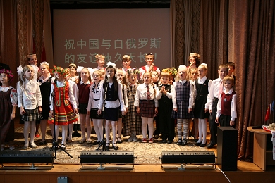 同學(xué)們質(zhì)樸而投入的表演深深打動了每一位觀眾。大使夫人走上舞臺,衷心感謝孩子們的精彩表演,特別感謝校方準(zhǔn)備的慶祝節(jié)目。她表示,看到白俄羅斯越來越多的孩子喜歡中國、學(xué)習(xí)漢語感到非常高興。中國使館愿與白俄羅斯朋友們一起,幫助更多的白俄羅斯青年人學(xué)習(xí)漢語,了解中國文化,幫助他們成為中白兩國人民交流的橋梁,為中白友誼的鞏固和不斷發(fā)展做出貢獻(xiàn)。