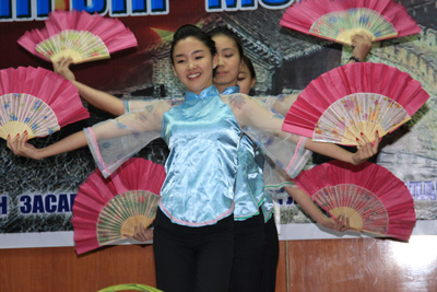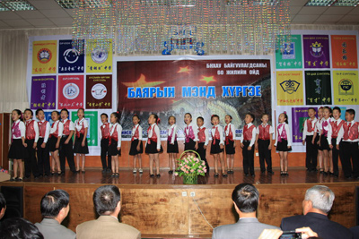 中新網(wǎng)9月27日電 據(jù)中國(guó)外交部網(wǎng)站消息,9月25日,為慶祝中華人民共和國(guó)成立60周年暨中蒙兩國(guó)建交60周年,蒙古首都教育局組織全市開(kāi)設(shè)漢語(yǔ)教學(xué)課程的16所中小學(xué)校的師生,精心準(zhǔn)備了一場(chǎng)有歌唱、舞蹈、柔術(shù)、器樂(lè)表演等多個(gè)節(jié)目的精彩演出。中國(guó)駐蒙古使館參贊王?档热w館員、蒙古首都教育局局長(zhǎng)恩赫巴雅爾及上述各校校長(zhǎng)觀看了演出。