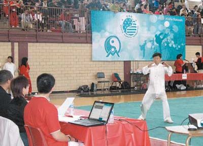這次比賽分傳統(tǒng)、散手、器械、規(guī)定套路、太極等類(lèi),參賽選手有初學(xué)不久者,也有多次參賽的老資格運(yùn)動(dòng)員,參與熱情最高的是生長(zhǎng)在美國(guó)本地的青少年。