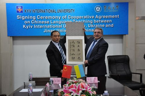 受校長胡軍的委托,暨南大學(xué)副校長賈益民于9月29日下午代表學(xué)校與烏克蘭基輔國際大學(xué)校長哈恰圖良簽署了兩校漢語教學(xué)合作協(xié)議書。在簽字儀式上,賈益民向來賓介紹了暨大的辦學(xué)情況,并講解了該校在辦學(xué)過程中形成的一整套,從教學(xué)、科研、教材編寫到海外教育項(xiàng)目開發(fā)的對外漢語教學(xué)辦學(xué)體系,暨南大學(xué)很樂意以優(yōu)質(zhì)的教學(xué)資源為有需要的國家提供漢語教學(xué)支持。哈恰圖良對暨大的熱情接待表示感謝,他盛贊中國是一個(gè)具有悠久歷史和文化傳統(tǒng)的偉大國家,漢語熱在世界范圍內(nèi)的興起就是最好的佐證。目前烏克蘭對漢語的需求很旺盛,學(xué)習(xí)漢語的人也越來越多,希望暨南大學(xué)在教學(xué)、師資等方面給予支持,全力推動烏克蘭的漢語教學(xué)工作。雙方簽署正式協(xié)議后將在建立漢語教學(xué)點(diǎn)、聯(lián)合培養(yǎng)研究生、互相協(xié)助招生等方面開展實(shí)質(zhì)性合作。