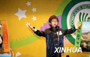 10月10日,在韓國(guó)首都首爾舉行的第二屆小學(xué)生漢語(yǔ)演講比賽上,樸焌汎小朋友在講述自己對(duì)中國(guó)美麗風(fēng)景和大熊貓的向往。當(dāng)日,由韓國(guó)現(xiàn)代中國(guó)研究會(huì)和韓國(guó)HSK實(shí)施委員會(huì)主辦、首爾孔子學(xué)院主管的第二屆小學(xué)生漢語(yǔ)演講比賽在首爾舉行。來(lái)自韓國(guó)各地的30多名小學(xué)生經(jīng)過(guò)激烈的角逐進(jìn)入決賽。(新華社/何璐璐 攝)