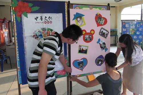 在短暫的休整過后,各教學(xué)點(diǎn)的大樂園教師分別召開會議,研究安排本次“中華文化大樂園”活動所面臨的問題和解決辦法。針對此次大樂園生源較少的特殊情況,校方采取了加大宣傳力度、印發(fā)大樂園宣傳冊、給周邊地區(qū)的學(xué)校和社團(tuán)分發(fā)邀請函等措施,以確保大樂園活動的順利開展。大樂園教師還精心布置了教師風(fēng)采、書法、國畫、剪紙作品展板,希望能夠激發(fā)學(xué)生和家長們對學(xué)習(xí)中華傳統(tǒng)文化的興趣。