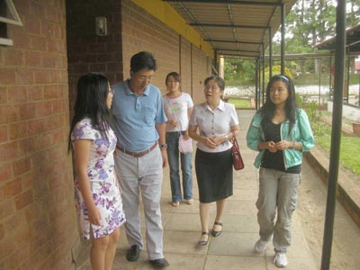 使館官員參觀了學(xué)校教學(xué)場(chǎng)地并與學(xué)校領(lǐng)導(dǎo)及志愿者舉行了座談,關(guān)切地詢問(wèn)了志愿者的工作和生活情況。他們表示,志愿者抵贊以來(lái),迅速適應(yīng)當(dāng)?shù)丨h(huán)境,工作態(tài)度認(rèn)真負(fù)責(zé),在較短的時(shí)間內(nèi)以出色的教學(xué)表現(xiàn)得到了學(xué)校和學(xué)生的高度評(píng)價(jià),希望她們?cè)俳釉賲,為在贊比亞弘揚(yáng)中國(guó)文化和漢語(yǔ)語(yǔ)言做出貢獻(xiàn)。會(huì)后,使館官員還向志愿者贈(zèng)送了生活慰問(wèn)品。