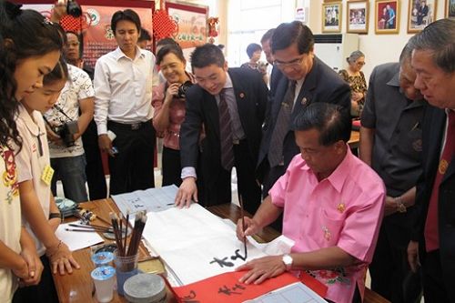 羅勇府府尹沙榮蓬∙林泰、泰國教育部民教委秘書長(zhǎng)代表甘恒君、泰國教育部民教委漢語項(xiàng)目主任賴芝華 、羅勇府第一區(qū)教育局長(zhǎng)通猜·滿空、泰國東部華文民校聯(lián)誼會(huì)理事會(huì)榮譽(yù)顧問梁冰、主席張步青、明滿學(xué)校校長(zhǎng)陳松等嘉賓共同出席了當(dāng)天的剪彩儀式,并參觀了孔子課堂的圖書展覽和各個(gè)文化項(xiàng)目。