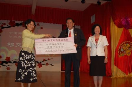 佟曉玲祝賀文萊中華中學于去年被中國海外交流協(xié)會授予“海外華文教育示范學!狈Q號,強調此次中國海外交流協(xié)會決定向文萊中華中學捐贈10萬元人民幣的辦學經費,既是中國有關方面對文中所取得成就的承認與鼓勵,也體現(xiàn)了中國政府和人民對海外華文教育事業(yè)的高度重視與大力支持。她表示,隨著中國的進一步發(fā)展和繁榮富強,中國將向海外華文教育機構提供更多資助。中國大使館也將一如既往地為文萊華文教育事業(yè)的發(fā)展貢獻力量。