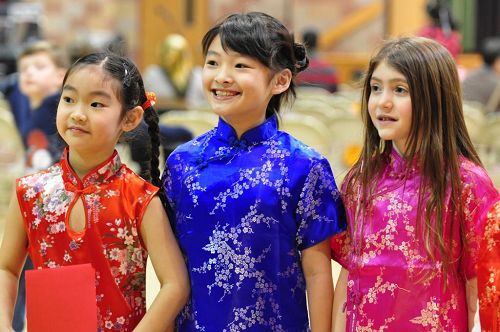 當(dāng)天,金發(fā)兒童也和中國(guó)孩子一起穿上了中國(guó)旗袍,學(xué)校校長(zhǎng)Ms.Ventola,教會(huì)主任牧師Father Sean和300多嘉賓一起參加了歡慶活動(dòng)。