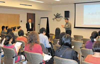 中新網(wǎng)4月16日電 據(jù)美國《世界日?qǐng)?bào)》報(bào)道,美國韋伯斯特大學(xué)孔子學(xué)院日前在該校愛莫森圖書館會(huì)議室舉辦第二屆漢語教師研修班。近50位圣路易地區(qū)漢語教師及漢語教學(xué)熱心人士參加培訓(xùn)會(huì)議。