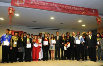 在自擬題目演講環(huán)節(jié),選手們或回顧自己漢語學(xué)習(xí)的經(jīng)歷,或介紹自己在中國旅游、留學(xué)的體驗(yàn),或暢談自己對中國文化感受最深的方面,博得了臺下觀眾一陣陣熱烈的掌聲。而在才藝展示部分,選手們更是各有絕招:踢毽子、詩朗誦、吉他彈唱、手風(fēng)琴演唱、歌舞、剪紙、書法、繪畫、太極拳、中國功夫……比賽精彩紛呈,令觀眾驚嘆不已。最后,來自智利圣托馬斯大學(xué)孔子學(xué)院的卡莉娜•阿巴爾卡獲得第一名,將被推薦赴中國參加復(fù)賽、決賽階段比賽。