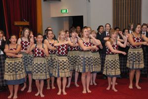 張利民與該校校長(zhǎng)Prue Taylor一同步入禮堂,學(xué)生們用傳統(tǒng)的毛利歌舞歡迎大使一行的到來(lái)。校長(zhǎng)在講話中表示,對(duì)于能夠在基督城女子高中這所擁有125年歷史的學(xué)校開(kāi)展“漢語(yǔ)角”活動(dòng),她倍感榮幸,同時(shí)也感謝張利民及新西蘭中使館教育處官員、新西蘭漢語(yǔ)顧問(wèn)以及社會(huì)各界為促進(jìn)漢語(yǔ)學(xué)習(xí)和交流的朋友們長(zhǎng)期做出的貢獻(xiàn)和支持。