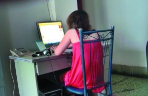 兩間臥室就是工作間,六個年齡大約20多歲的外地女孩,身穿睡衣,腳穿拖鞋,頭發(fā)凌亂,睡眼朦朧,都是一副剛起床還沒有梳洗的邋遢形象。她們當中,有人正一邊吃著東西一邊忙亂敲著鍵盤,有人一邊打著電話一邊還嚼著東西。每個人面前電腦屏幕上,都開著多個QQ聊天窗口。