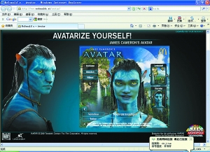美國(guó)科幻大片《阿凡達(dá)》正在成為國(guó)內(nèi)網(wǎng)民熱烈討論的對(duì)象。在百度貼吧內(nèi),“阿凡達(dá)吧”內(nèi)帖子數(shù)量已經(jīng)超過13萬。眾多網(wǎng)民熱烈討論《阿凡達(dá)》電影劇情與特技,將其與《三槍》等國(guó)產(chǎn)大片電影進(jìn)行比較,而且動(dòng)手制作自己的PS,變身為阿凡達(dá)。麥當(dāng)勞網(wǎng)站推出的“阿凡達(dá)變臉器”軟件,可以將用戶上傳的照片直接制作成納美人的模樣。網(wǎng)友只要提供一張清楚的照片,利用該軟件,就可以在不到2分鐘的時(shí)間內(nèi)變身為潘多拉星球上的納美人,擁有納美人兩個(gè)招風(fēng)耳、藍(lán)色皮膚、紅色的眼睛。該軟件分成了男版和女版,供網(wǎng)民自主選擇,還可以自主更換背后場(chǎng)景。網(wǎng)民不僅制作李宇春、姚明、郭德綱、阿嬌、小沈陽等娛樂明星的“納美照”,而且自己紛紛變身為“納美人”,在網(wǎng)上曬出來供大家欣賞。記者發(fā)現(xiàn),在百度上用“阿凡達(dá)變臉器下載”進(jìn)行搜索,能找到2000多個(gè)網(wǎng)頁鏈接。許多網(wǎng)站還推出了該軟件的使用教程,吸引網(wǎng)民點(diǎn)擊。一家網(wǎng)站上還有網(wǎng)友發(fā)起了“納美人”選美大賽,網(wǎng)民紛紛上傳自己的“阿凡達(dá)頭像”,由網(wǎng)民投票進(jìn)行PK。