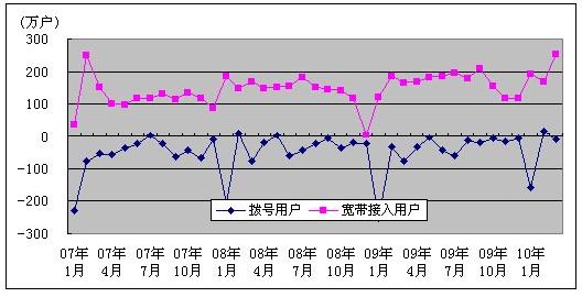 中新網(wǎng)4月26日電 據(jù)工信部今日公布的《2010年3月通信業(yè)運(yùn)行狀況及主要指標(biāo)完成情況》顯示,截止第一季度,基礎(chǔ)電信企業(yè)互聯(lián)網(wǎng)寬帶接入用戶凈增610.5萬(wàn)戶,達(dá)到10933.1萬(wàn)戶,而互聯(lián)網(wǎng)撥號(hào)用戶減少了152.0萬(wàn)戶;A(chǔ)電信企業(yè)的互聯(lián)網(wǎng)用戶進(jìn)一步趨向?qū)拵Щ?table border=0 cellspacing=0 cellpadding=0 align=left>