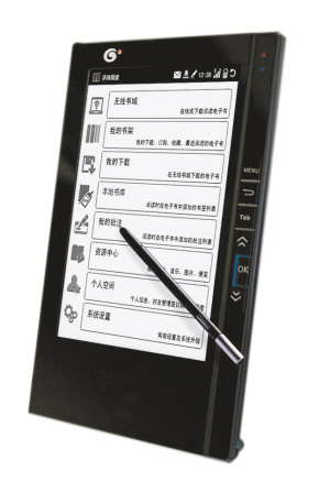 通體白色的機(jī)器,屏幕上古雅的國畫畫面,108種內(nèi)置正版書,著實(shí)吸引了不少人的圍觀,而這款機(jī)器正是由中國出版集團(tuán)公司推出的電子閱讀器,“這款電子閱讀器的推出標(biāo)志著中國出版集團(tuán)正式進(jìn)入電子閱讀器產(chǎn)業(yè),也是中國出版集團(tuán)從傳統(tǒng)出版集團(tuán)向新型出版集團(tuán)邁進(jìn)的重要一步”。中國出版集團(tuán)總裁聶振寧說。據(jù)現(xiàn)場工作人員介紹,這款電子閱讀器包括了中國出版集團(tuán)的所有圖書并都擁有電子版權(quán),可供讀者下載閱讀。而仗著內(nèi)容的優(yōu)勢,其閱讀器的市場銷售價(jià)在5000元左右,比市場上流行的閱讀器兩三千元的價(jià)格高出一大截。