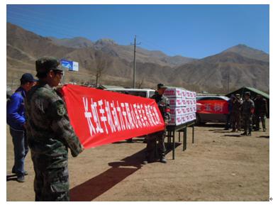 長虹手機(jī)首批災(zāi)后重建物資抵達(dá)玉樹----捐贈給成都軍區(qū)防化部隊(duì)手中