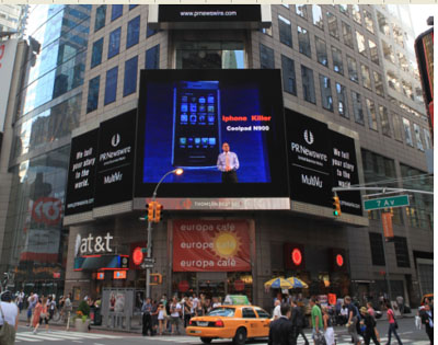 由于成為美國近一周來媒體關(guān)注的焦點(diǎn),作為紐約地標(biāo)建筑的時(shí)代廣場(chǎng)新聞電子大屏對(duì)《Yulong Launches Coolpad N900 in China to Combat iPhone》的新聞進(jìn)行了長時(shí)間的播報(bào),中國手機(jī)新力量可能對(duì)iphone產(chǎn)生的沖擊引起了美國社會(huì)的廣泛關(guān)注,這也是國產(chǎn)手機(jī)首次亮相紐約時(shí)代廣場(chǎng)。