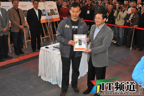 中新網(wǎng)10月30日電 下午6點,中國聯(lián)通iPhone手機正式在中國市場發(fā)售。中國聯(lián)通副總經(jīng)理李剛現(xiàn)場售賣第一臺iPhone,同時中國聯(lián)通高層向現(xiàn)場購得手機的第一位機主頒發(fā)證書。