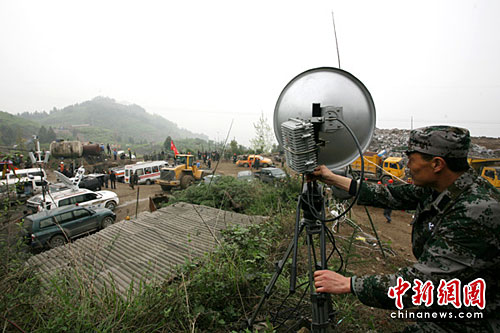4月7日17時(shí),中國(guó)移動(dòng)公司衛(wèi)星應(yīng)急通信車趕到災(zāi)情指揮中心后,4月8日,中國(guó)電信也將應(yīng)急通訊車開(kāi)到了救援現(xiàn)場(chǎng),并架起了微波通訊。記者在救援指揮部外看到,一臺(tái)可同時(shí)供12部手機(jī)充電的自助式充電站前圍滿了等待給手機(jī)充電的人,中國(guó)移動(dòng)提供的4臺(tái)免費(fèi)移動(dòng)電話前排起小隊(duì),兩大通信運(yùn)營(yíng)反映迅速極大的方便了現(xiàn)場(chǎng)的救援工作人員。