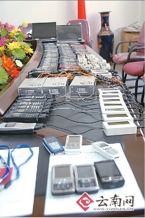 現(xiàn)場(chǎng)查獲了3臺(tái)筆記本電腦,一臺(tái)臺(tái)式電腦,37部短信群發(fā)器,170余部用于連接“土炮”發(fā)短信的各型手機(jī),手機(jī)中均裝有短信卡,用于犯罪時(shí)轉(zhuǎn)賬用的40余張各個(gè)銀行的銀行卡、存折。3000余張他們自己設(shè)計(jì)制作的某某名牌牙膏商品銷售刮刮獎(jiǎng)卡、2000余張香港某某集團(tuán)刮刮獎(jiǎng)卡。10余部自己使用轉(zhuǎn)接電話的手機(jī)。手機(jī)卡100余張等贓物。