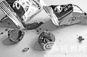 香滑的果仁巧克力,一向深受消費(fèi)者歡迎,被許多人當(dāng)成饋贈(zèng)親友的禮品。前幾天,陳女士就因參加婚禮分到幾盒德芙原粒杏仁巧克力。沒(méi)想到的是,一顆巧克力里竟然吃出了三條活生生的蟲子。