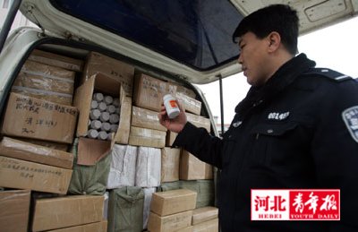 “他們稱自己是快郵公司的,幫一位貨主往石家莊郵局送貨!泵窬顕暾f,他們檢查發(fā)現(xiàn),該車拉的是寄往全國各地治療風濕、關節(jié)炎、定喘等癥狀的保健藥品。通過直觀判斷,這些藥瓶質地粗糙,疑似假藥,兩民警立即將情況上報大隊長張紅慶。