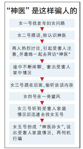 趙老太既感后怕又覺(jué)不解。“神醫(yī)”怎么知道她家事呢?審訊中,騙子們交待說(shuō),這是“精心”設(shè)計(jì)的把戲。