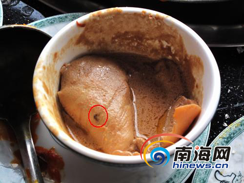 針對此事,南海網(wǎng)記者采訪了重慶劉一手火鍋的經理王女士,她解釋說,周先生第一次吃到的不是頭發(fā),而是火鍋料理!拔覀兊幕疱伒琢戏帕撕芏喾N料理,而且都是一次性,應該不會存在有頭發(fā)掉進鍋里的可能。后面2次情況,我們店方也向消費者賠禮道歉了,并提出給對方打折,但他們不接受,要求我店方免單和賠償精神損失費,這點我們不接受!