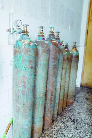 沒有醫(yī)用氧氣合格證、沒有藥品批準(zhǔn)文號、沒有生產(chǎn)日期,甚至鋼瓶上沒有氧氣生產(chǎn)廠家的名字。昨天,在尉氏縣第二人民醫(yī)院內(nèi)科,記者看到,搶救室里擺放著7鋼瓶“醫(yī)用氧”(如圖)。醫(yī)院工作人員說,這些醫(yī)用氧有生產(chǎn)廠家,但生產(chǎn)廠家負(fù)責(zé)人向記者證實,他們已有近兩年沒有向這家醫(yī)院供應(yīng)過醫(yī)用氧。