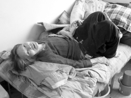 隨后記者走進(jìn)敬老院的寢室,看到每個(gè)房間有四張床,其中一樓的一個(gè)房間門開著,在門外就能聞到一股刺鼻的臊臭味,房間內(nèi)有位老太雙腿蜷起,正躺在床上呻吟,床底下還有一泡尿。老太說,她行動(dòng)不便,喊了半天也沒人攙她去廁所,結(jié)果尿床了。此時(shí),一位老人走了進(jìn)來,將屋里的一個(gè)暖瓶拿走了,見老太尿床了,對(duì)她一番責(zé)罵。記者又走進(jìn)另一間屋子,一位老人正拿著笤帚清掃。老人表示,沒人打掃內(nèi)務(wù),只能自己打掃,不然就得挨罵。