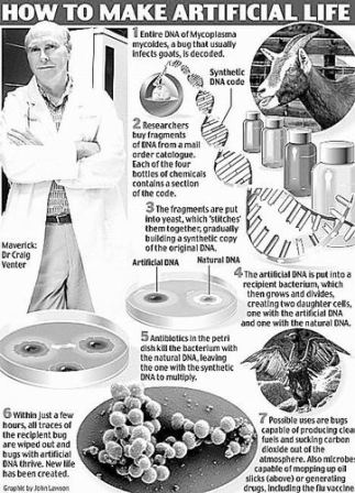 本月20日,美國(guó)科學(xué)家宣布,他們?cè)趧?chuàng)造人工合成生命的道路上又邁進(jìn)了一步,世界首例“人造生命”,即完全由人造基因控制的單細(xì)胞細(xì)菌誕生。他們將它命名為“人造兒”。該項(xiàng)實(shí)驗(yàn)表明,新的生命體不一定要通過(guò)“進(jìn)化”來(lái)完成,也可以在實(shí)驗(yàn)室里“被創(chuàng)造”。消息傳出,立即引起社會(huì)各界的強(qiáng)烈反響。許多科學(xué)家對(duì)這一成果給予了積極評(píng)價(jià),但也不乏憂慮之聲。